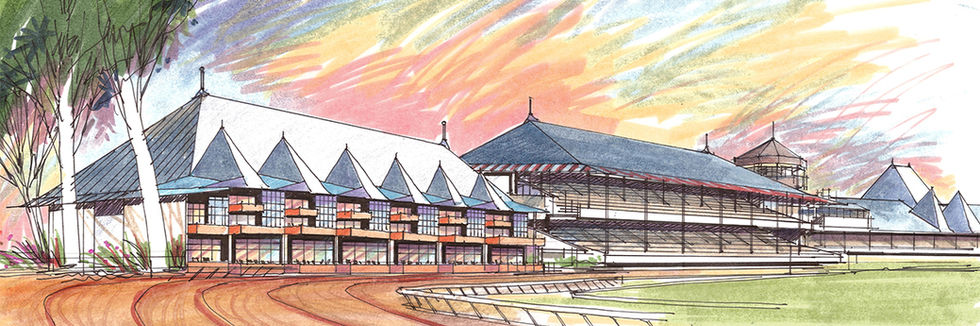 This exciting new three-story luxury hospitality building located at the historic Saratoga Race Course features private suites with unobstructed views of the racecourse, betting terminals, private betting rooms, buffet, bar, and balconies designed for horse viewing.